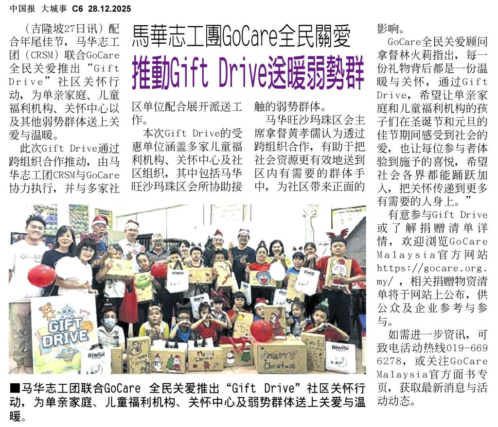 收到的每一份礼物都会由 GoCare Malaysia 精心整理和重新包装 🎀,确保它们在送到儿童福利机构 🏠 时完好无损,也能呈现出节日的惊喜感。通过这次活动,我们希望孩子们在拆开礼物的瞬间 😊,感受到来自社会的关爱与温暖,并留下美好的记忆 ✨。