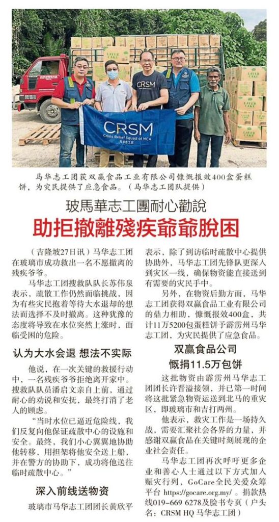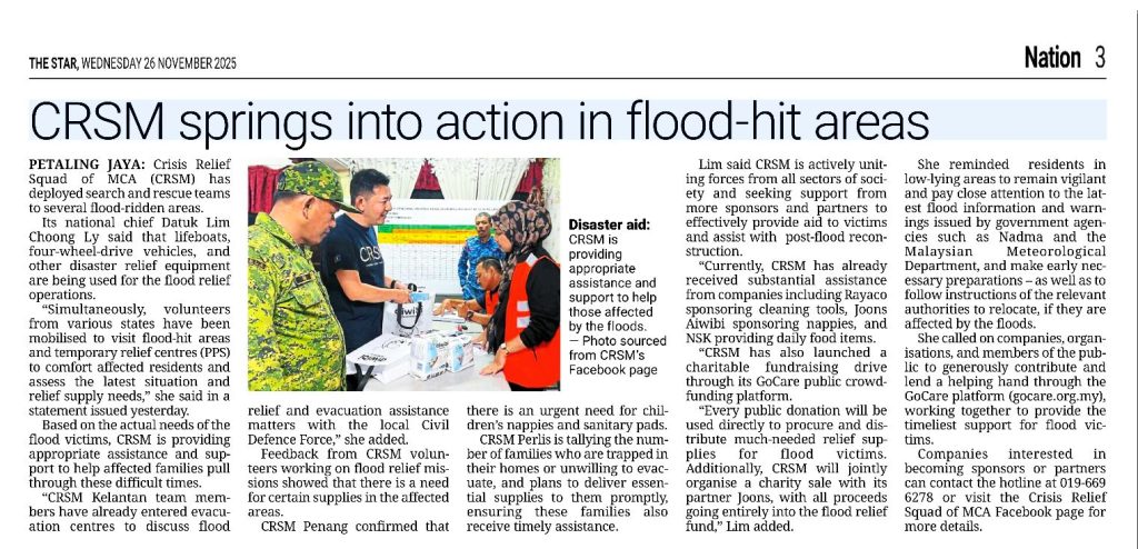CRSM springs into action in flood-hit areas